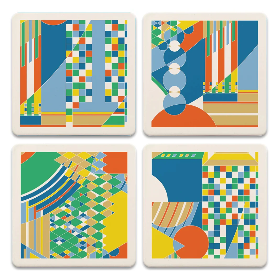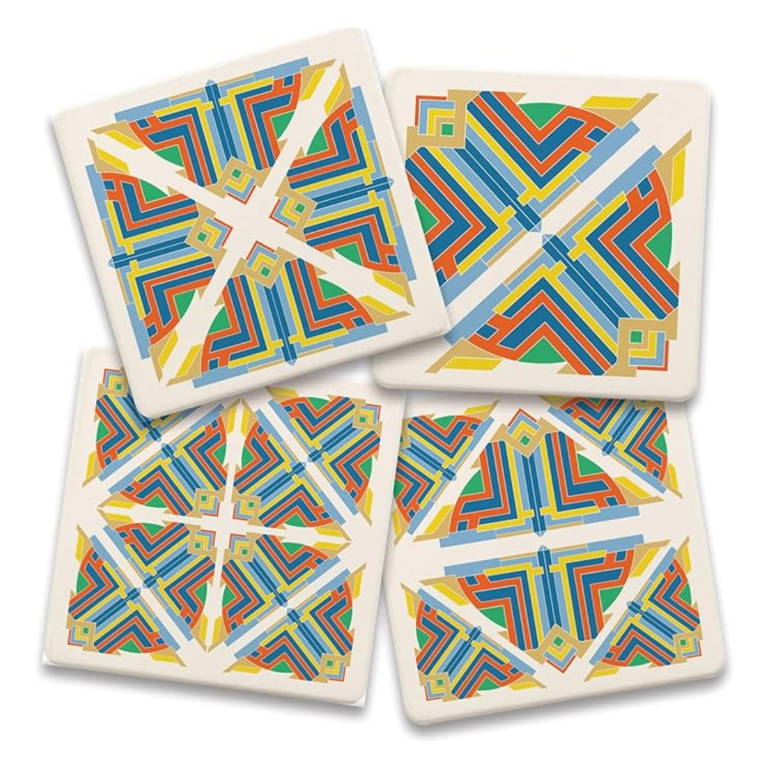 Frank Lloyd Wright "Oya Pier Carving " 4 Pack Assorted Image Coaster Set.