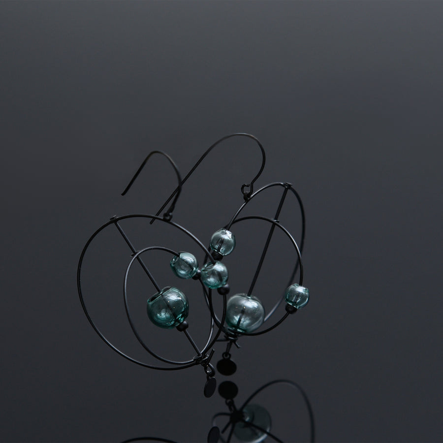 Motion captured in form—ROVE features two slender rings that pivot around a central axis, with a glass sphere suspended like a tiny planet in orbit. Its delicate spin, quiet rhythm, and airy balance invite closer attention. Light-catching, endlessly wearable, and made to move with you—ROVE isn’t just an earring, it’s a quiet pull toward the unexpected.