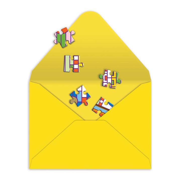 The package comes with the puzzle fully assembled. Write the message on the back, break up the pieces, place in the envelope, and mail.