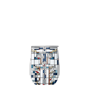 The delicate stylized glass design of waterlilies adapted from Frank Lloyd Wright's drawing "Waterlilies," which is thought to be designed for an art glass screen in 1895 but never produced, is captured here in this 12 oz. Stemless Wine Tumbler.
