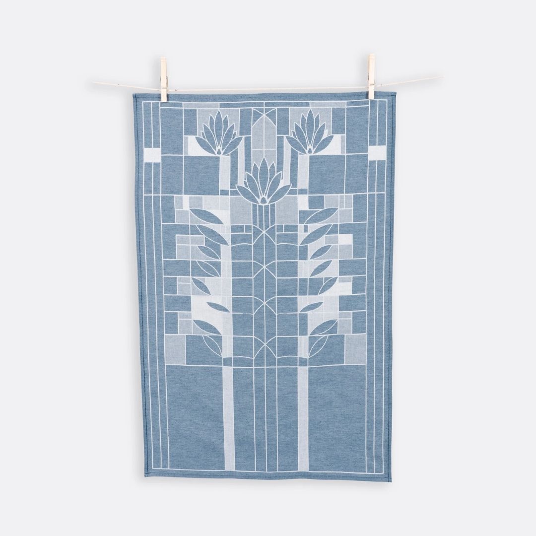 This 100% Cotton Waterlilies jacquard tea towel has a beautiful and elegant woven design inspired by the work of iconic architect Frank Lloyd Wright. Soft to the touch, this towel will add elegance to any setting.