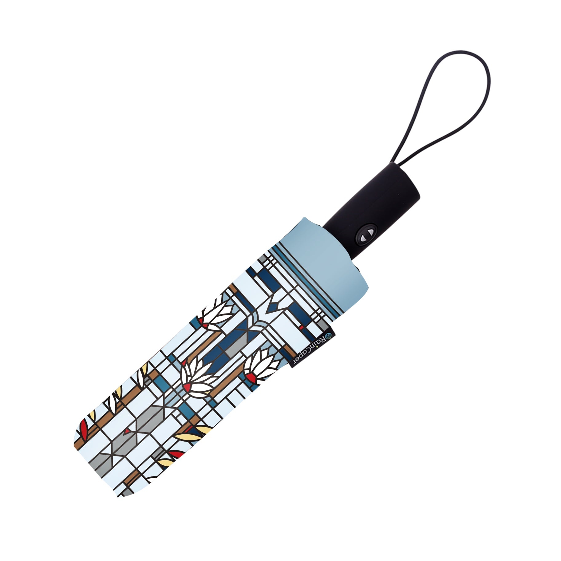 Going places? Stroll local streets or promenade avenues around the globe – RainCaper has you covered. A RainCaper Folding Travel Umbrella is small enough to tuck in a pocket or purse, but still large enough to take care of business. This artfully designed LFrank Lloyd Wright travel umbrella includes a wrist strap and a matching sleeve.